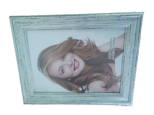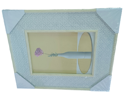 MARCO GRANDE BLANCO ACABADO MADERA CON BORDES PLATEADOS
